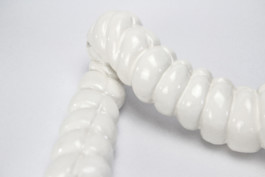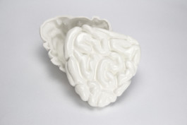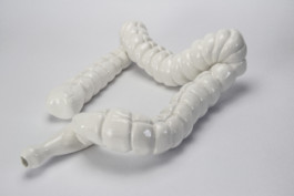 The work acculturative Jars looks like artificial figures of models of digestive organs from anthropotomical pictures. The surface is evenly glazed and non-porous looking, made of porcelain by slip casting technique with plaster mold, so it has a volume, but is empty inside. Through the material properties, vulnerability, solidity, and emptiness are embodied in how our body endures tension and emotion in terms of acculturation stress¹ and how it requires a constant flow of physical energy and an individual effort.